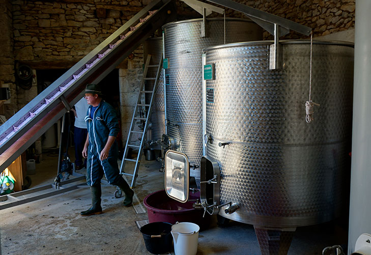 L’ancienne cave de la ferme familiale a été réhabilitée. La grange attenante a été aménagée en chai. Ces bâtiments construits en pierre du causse datent du XVIII° siècle. Les vins sont vinifiés dans des cuves inox de petit volume (20 et 30 hl). Ils sont élevés en cuve inox et fut de chêne pour certains.